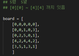 board 는 [0][0] ~~ [4][4]까지의 인덱스번호를 가지고 있다 (5 x 5 기준)