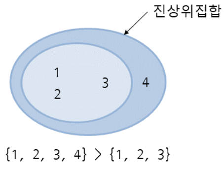 ## 현제세트가 다른 세트의 진상위집합인지 확인하는 방법, 별도 메서드 없음