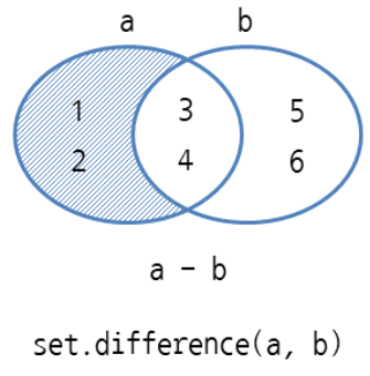 ## set.difference(세트1, 세트2)