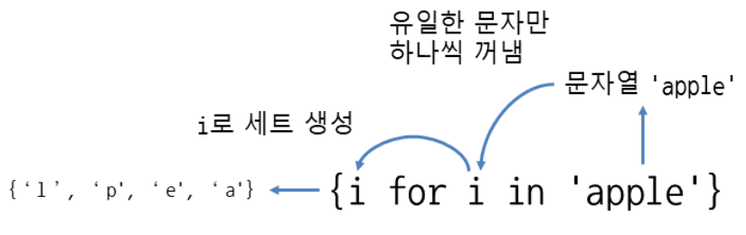 ## set(식 for 변수 in 반복가능한객체)