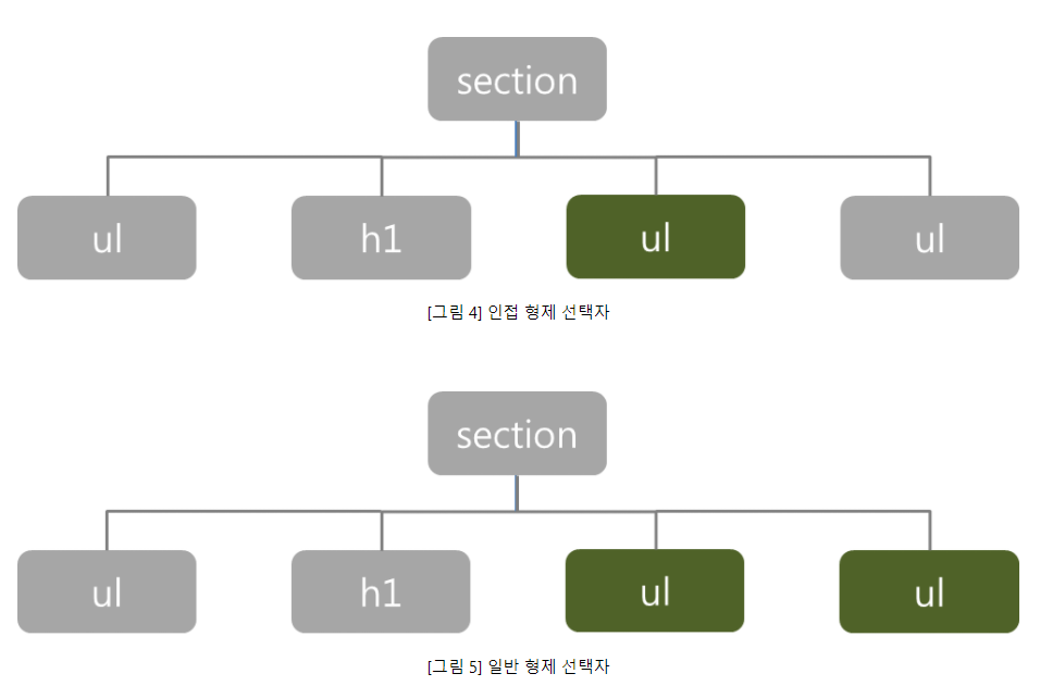 인접 형제 선택자 => 형제 중 첫번째 동생 요소가 조건을 충족시킬때에만 스타일을 적용