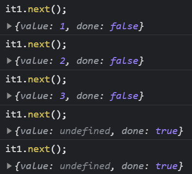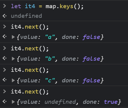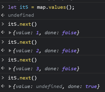 다시 value 값을 담아서 출력하고를 반복하다가 done이 true가 되는 순간 for 문법에서 빠져나오는 것을 볼 수 있다.