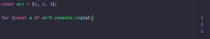 const arr = [1, 2, 3]; for (const a of arr) console.log(a);
