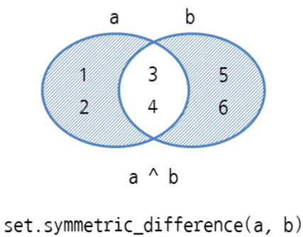 ## a, b의 차집합들 간의 합집합이라고 생가하면 된다 (a-b)U(b-a) == (a-b) | (b-a)