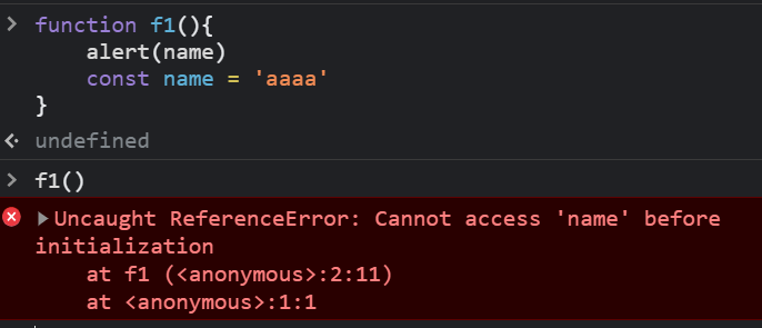Temporary Dead Zone이라는 개념 때문에 할당되기 전에 호출하면 에러가 발생하게 된다.