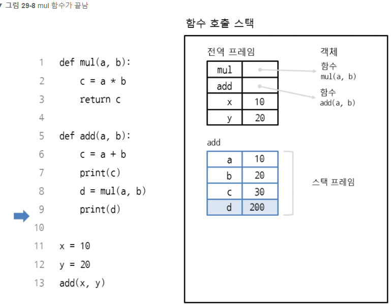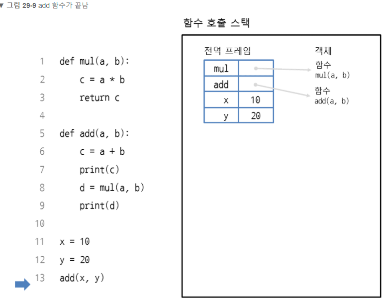 ## 줄 9의 print d 를 끝으로 add 함수가 끝나게 되는 이미지