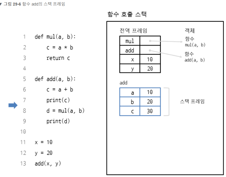 # 프레임(frame) : 메모리에서 함수와 함수가 속한 변수가 저장되는 독립적인 공간이다.