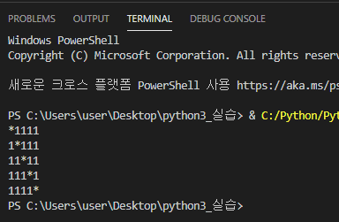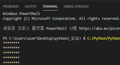 print('*', end='') # end ==> 줄바꾸지 말고 바로 옆에 표시해라