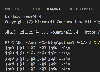 # i = 0 , j = 1 일때 print를 수행하지 않고 Line 5번 for문 다시 반복!!