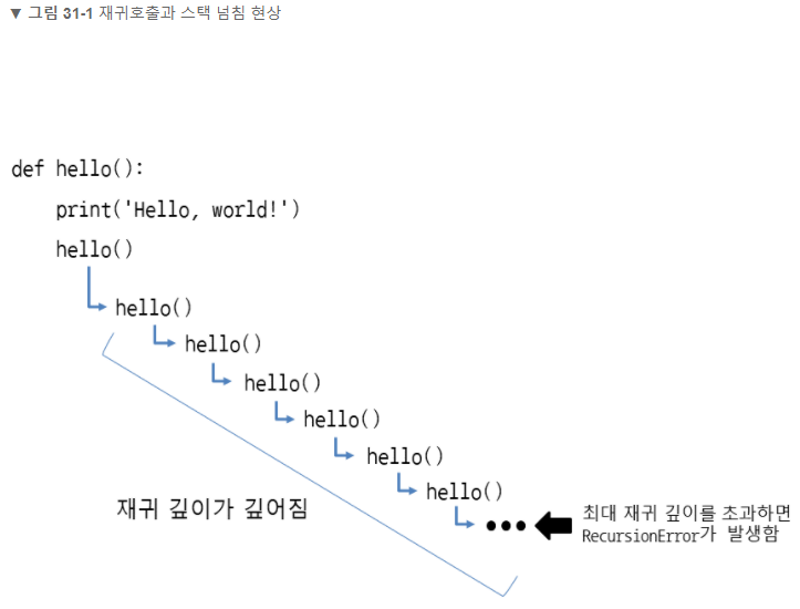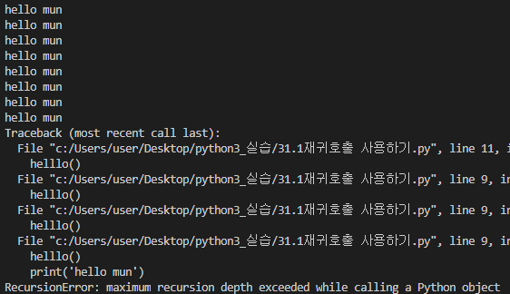 ## 즉, hello 함수가 자기 자신을 계속 호출하다가 최대 재귀 깊이를 초과하기 때문에 error 가 발생한다.