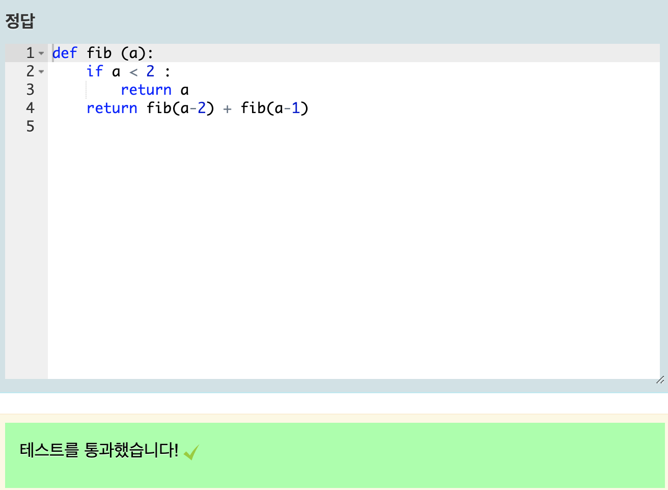 def fib (a): if a < 2 : return a2. 위의 결과를 얻기 위해선 실제적으로 a = 2인 경우 부터 그 전의 두값을 더해가면서부터 시작된다.