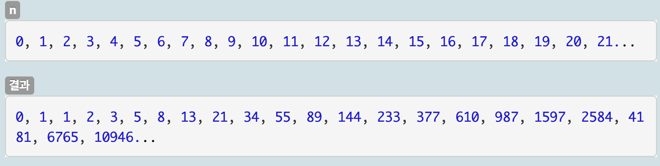 문제에서도 제시해주지만 0, 1 시작 후 2부터는 바로 두 앞의 수의 합이 결과로 반환되는점이다.