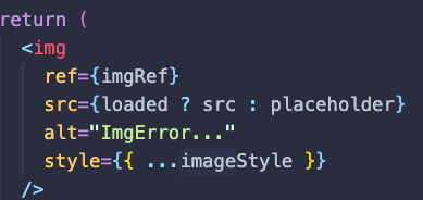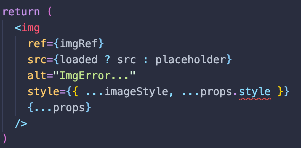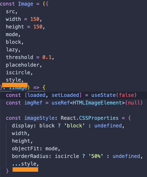 interface IImage { src: string width?: number height?: number mode: string block: Boolean lazy: Boolean threshold: number placeholder: string iscircle: Boolean } const Image = ({ src, width = 150, height = 150, mode, block, lazy, threshold = 0.1, placeholder, iscircle, ...props }: IImage) => { const [loaded, setLoaded] = useState(false) const imgRef = useRef(null)다른 코드에서는 문제가 없지만 한 군데 에러가 발생한다.