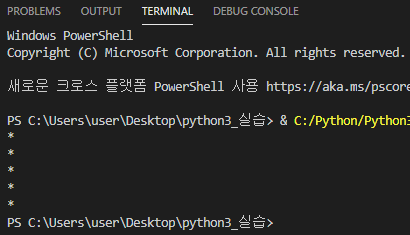 print('*', end='') # end ==> 줄바꾸지 말고 바로 옆에 표시해라