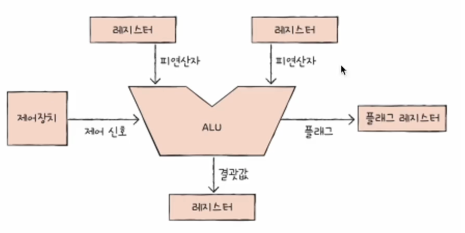 즉, 레지스터로 부터 피연산자를 받아들이고, 제어장치로부터 수행할 연산을 알려주는 제어 신호를 받아들인다.