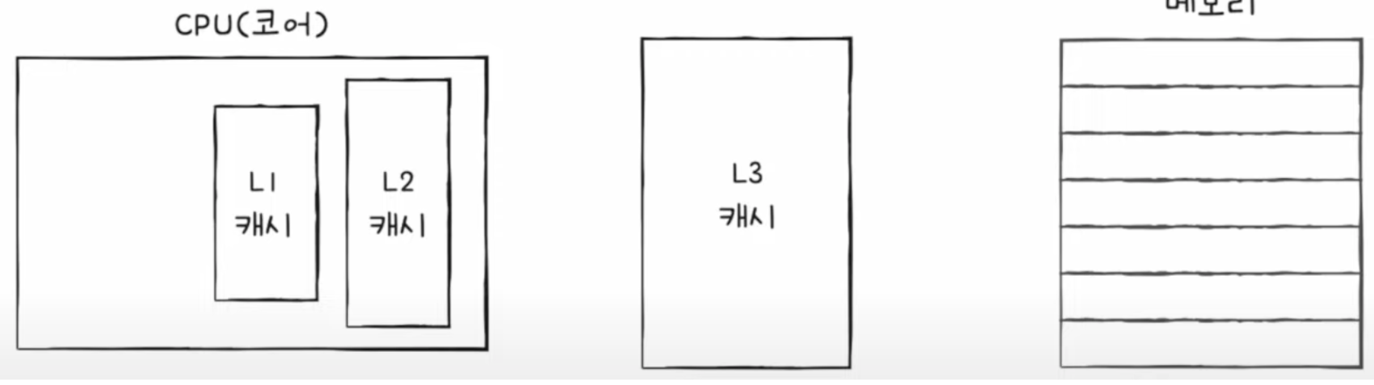 이러한 캐시 메모리들은 CPU와 가까운 순서대로 계층을 구성하는데, 가장 가까운 캐시 메모리는 L1, (level 1) L2, L3 캐시가 있다.