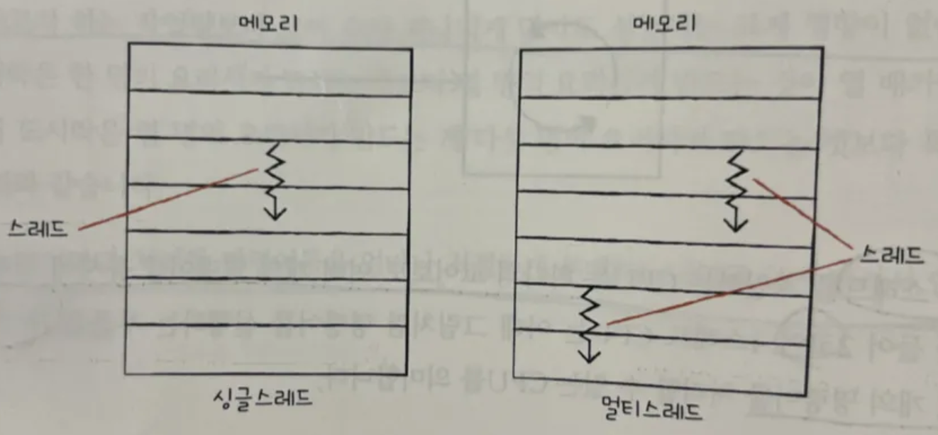 - 실행 흐름의 단위라고만 암기한다면 1코어 1스레드 CPU가 여러 스레드로 만들어진 프로그램을 실행할 수 있다는 말을 이해하기 어려워질 수 있다. 따라서 하드웨어적 스레드와 소프트웨어적 스레드를 구분하여 기억하는 것이 좋다.