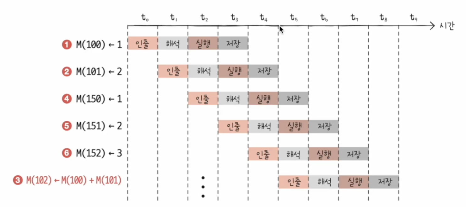 여기서 중요한점은 같은 단계가 겹치지만 않는다면 CPU는 각 단계를 동시에 실행할 수 있다는 것이다