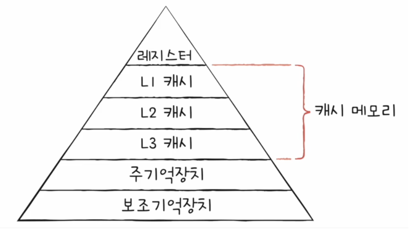 CPU와 가까운 저장 장치는 빠르고, 멀리 있는 저장 장치는 느리다.