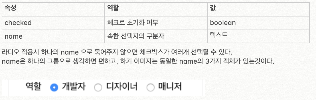 라디오 적용시 하나의 name 으로 묶어주지 않으면 체크박스가 여러개 선택될 수 있다.