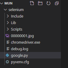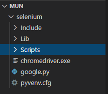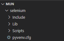 위와 같이 mun 폴더안에 selenium 이라는 가상환경이 생성된다.