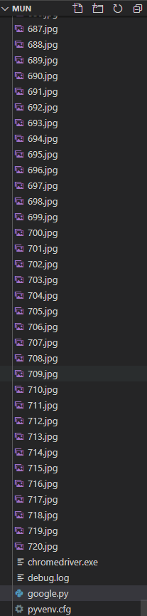 모든 파일을 selenium 파일안에 옮겨줬다면 해당 파일 안에 goolgle.py를 만들어 본격적으로 이미지 크롤링을 위한 코드를 작성해보자 (이때 크롬드라이버와 google.py는 같은 경로에 있어야한다.)