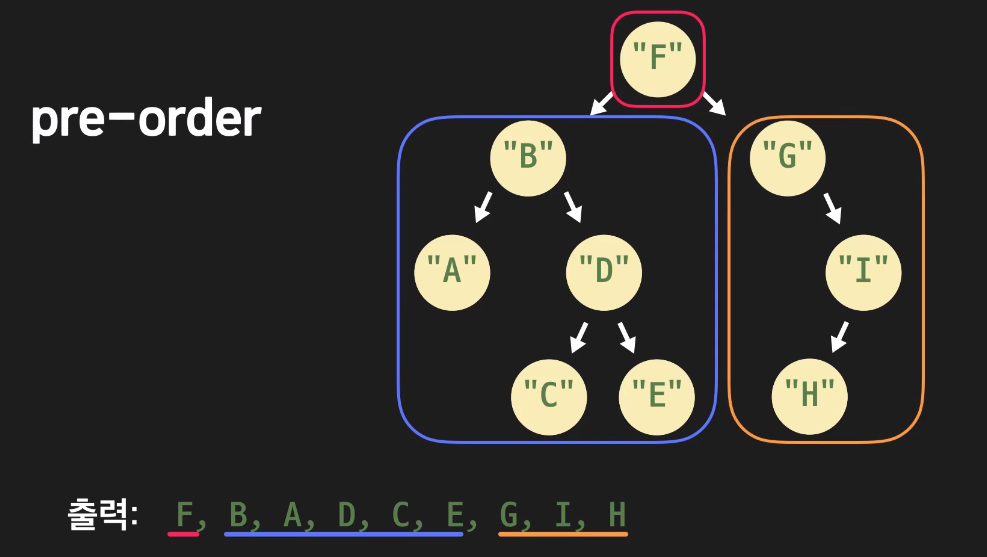 부분 트리 순회를 하기 전에 현재 노드를 출력하는 순회 방식이다.